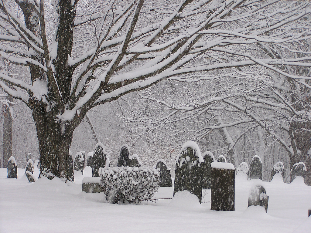 The one with longer hair shivered a little bit and then wrapped his scarf tighter to his face. He brushed some snow out of his face but more snowflakes fell to take their place. The taller one did not remove his hands from the pockets of his coat. He swayed a little bit back and forth from standing on the balls of his feet to his toes. Both stood in silence for a long time staring down at the headstone.