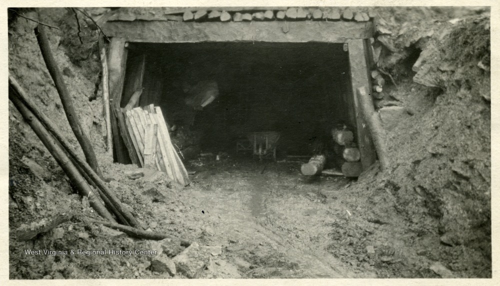She glanced around to the wooden area and then to the opening of the abandoned mine.